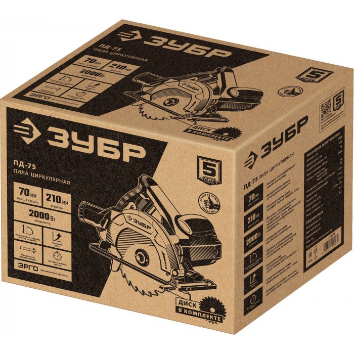 - Бесступенчатая регулировка глубины и угла пиления для точных работ