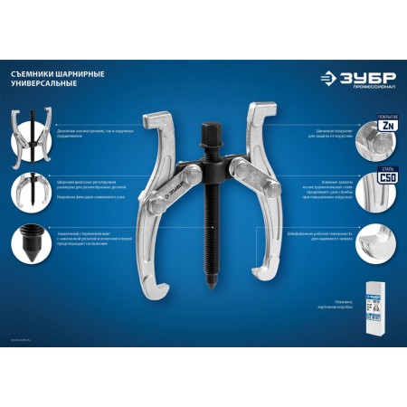 Съемник трехзахватный шарнирный с серповидными захватами d 40-150 мм Профессионал ЗУБР 43323-110
