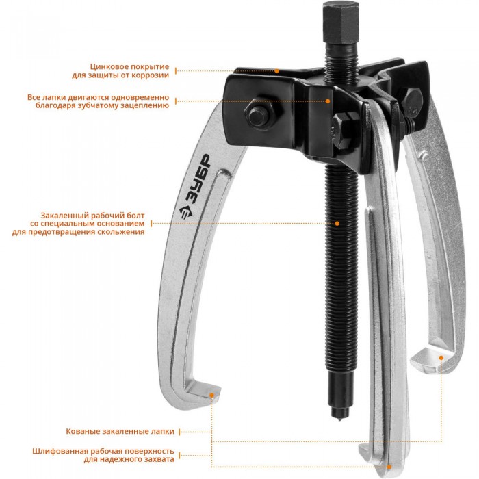 Съемник трехзахватный шарнирный с серповидными захватами d 50-200 мм Профессионал ЗУБР 43323-160