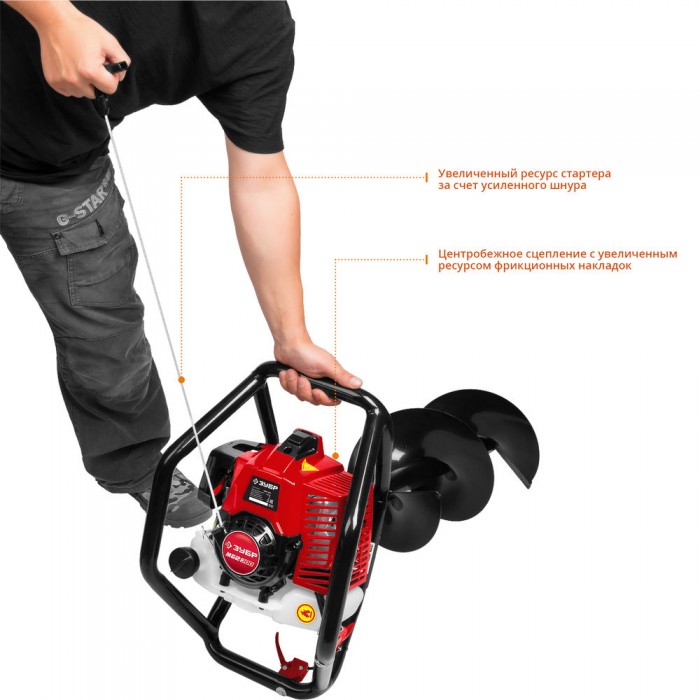 Мощный инструмент для бурения отверстий в мягких, твердых, мерзлых грунтах, а также во льду. Мощный 2-х тактный двигатель и универсальная конструкция рамы позволяют быстро и эффективно произвести необходимые работы по бурению. Конструкция рамы мотобура позволяет работать как одному, так и двум операторам, что повышает эффективность бурения, кроме того обеспечивает дополнительную сохранность двигателя при работе и транспортировке.