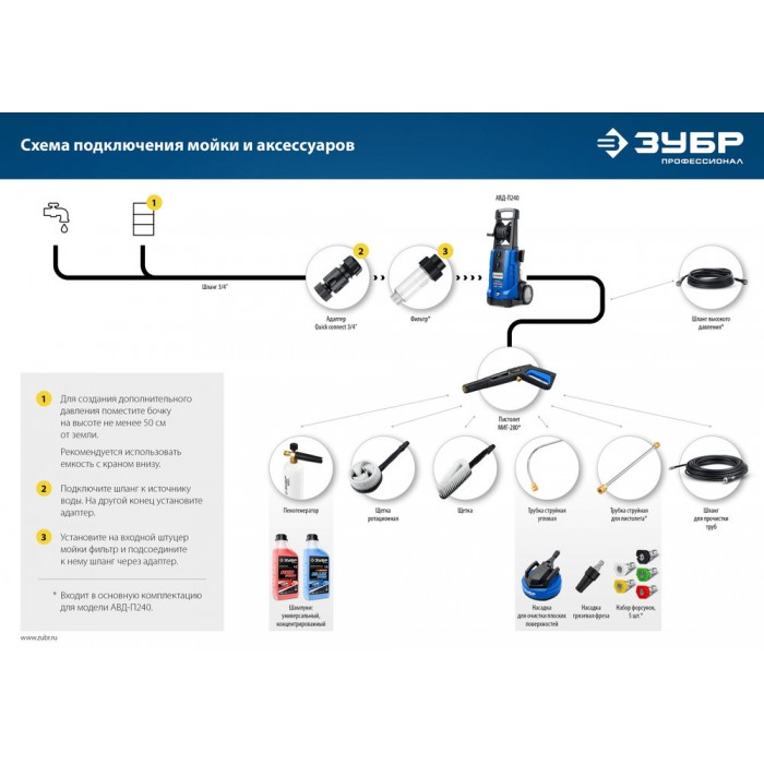 Качественные комплектующие для расширения функциональности моек ЗУБР
