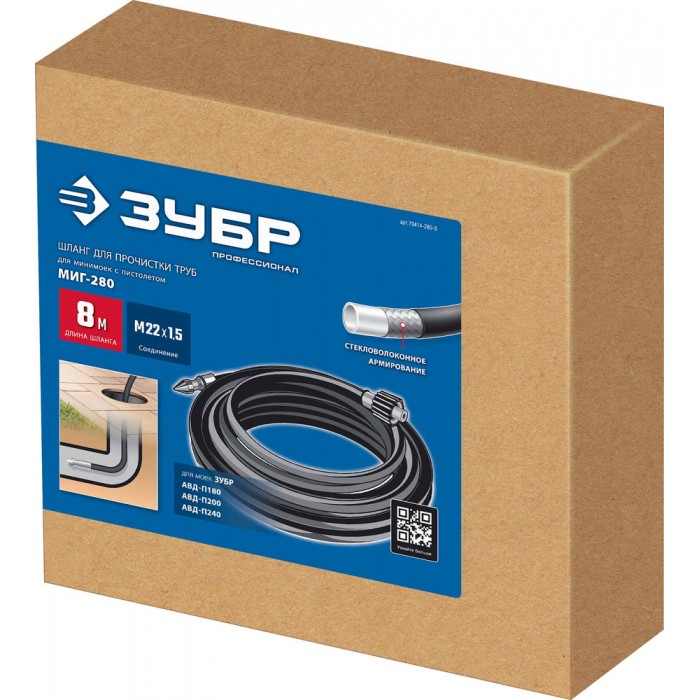 Шланг для прочистки труб для пистолета МИГ-280 8 м ЗУБР 70414-280-8