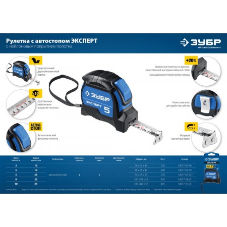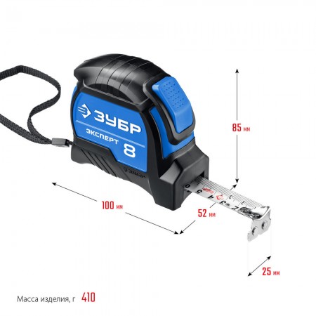 Рулетка с автостопом 8 м х 25 мм Профессионал ЗУБР ЭКСПЕРТ 34057-08-25