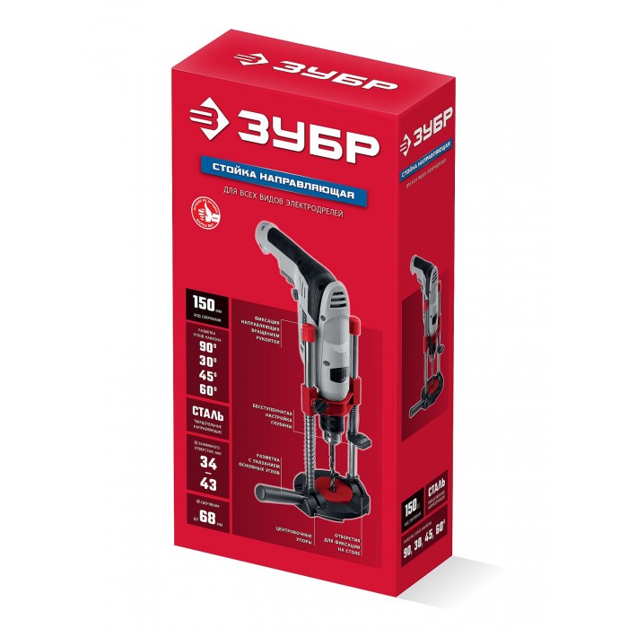Профессиональный инструмент с направляющими из стали для работы с большинством моделей электрических дрелей и шуруповертов. Простая регулировка угла сверления. Надежная фиксация дрели для выполнения точного сверления, в том числе сверлами малого диаметра. Быстрая регулировка глубины сверления. Специальный V-паз для работы с трубами. Паз внизу основания для автоцентровки на торцевых поверхностях толщиной до 60 мм, для больших размеров (до 80мм) можно использовать центровочные болты закрепленные в основании. 4 отверстия в основании для надежной фиксации инструмента на рабочей поверхности.