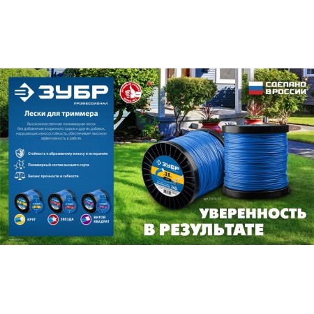 Леска для триммера КРУГ, 2.0 мм, 15 м ЗУБР Профессионал 71010-2.0
