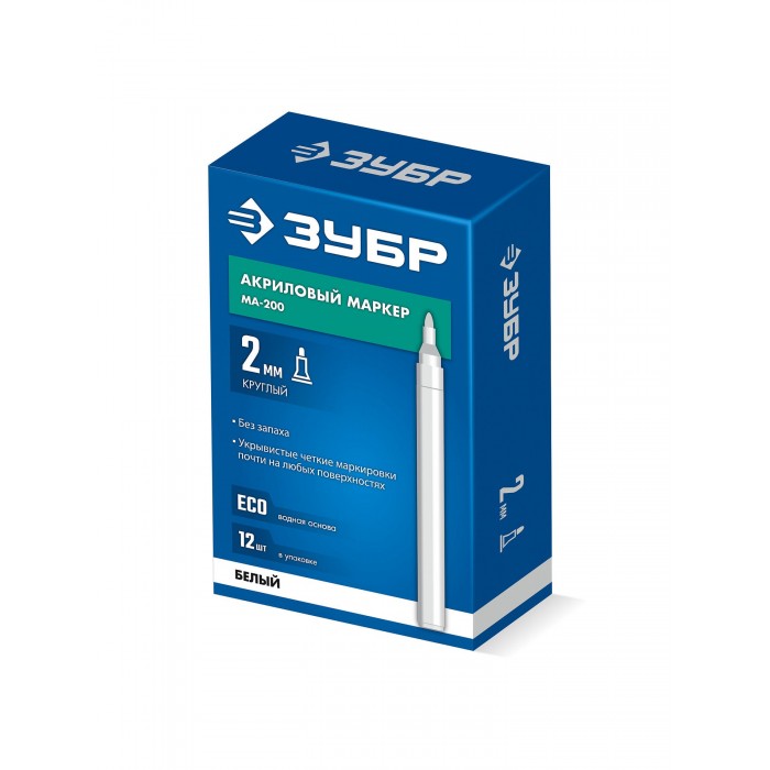 Маркер акриловый с пулевидным наконечником. Пишет практически на любых поверхностях. Водная основа экологична и не пахнет. Акриловая краска обладает повышенной укрывностью.