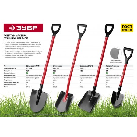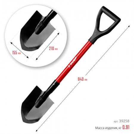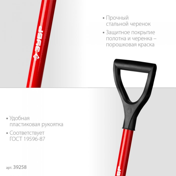 Автомобильная лопата 210 х 155 х 840 мм полотно 1.5 мм закалено стальной черенок с рукояткой ЗУБР МАСТЕР 39258