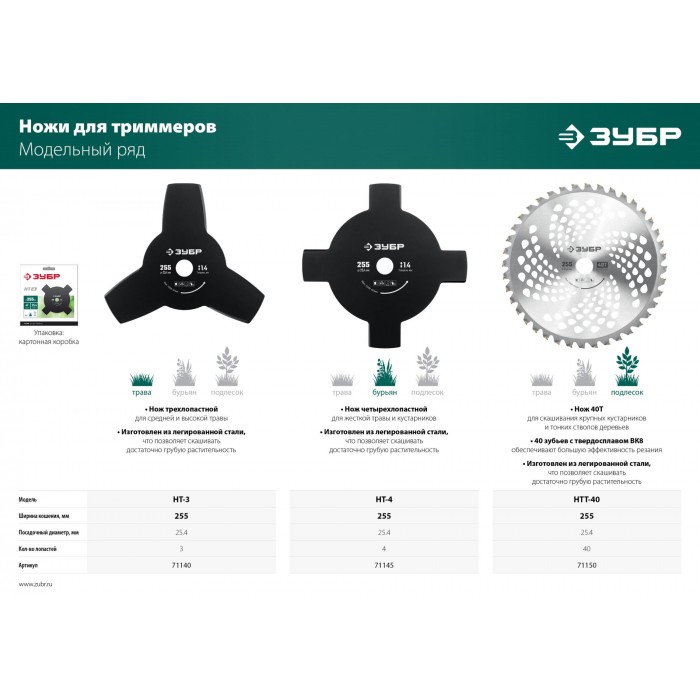 ЗУБР НТ-3, 255 мм, 3T, нож для триммера (71140)