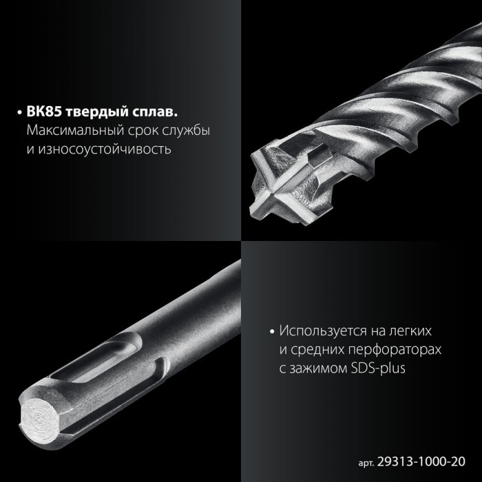 Бур SDS-plus 20 х 1000 мм ПРОФИ-4Х ЗУБР 29313-1000-20
