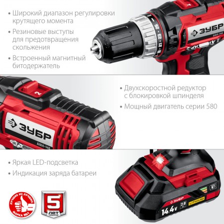 - Двухскоростной планетарный редуктор позволяет как заворачивать с большим крутящим моментом, так и сверлить на высоких оборотах