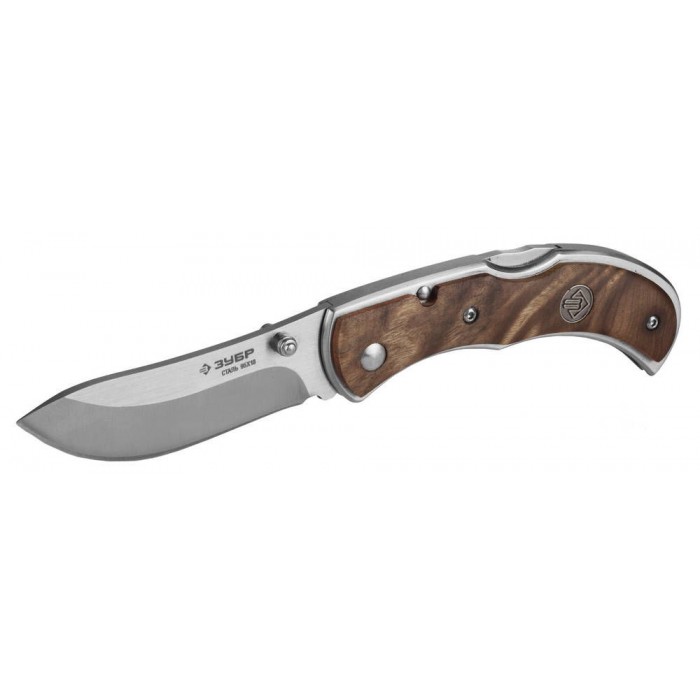 Складной нож 180 мм лезвие 75 мм рукоятка с деревянными накладками ЗУБР Скиф 47712