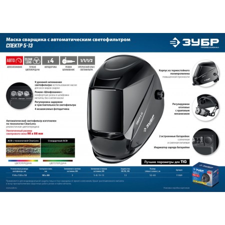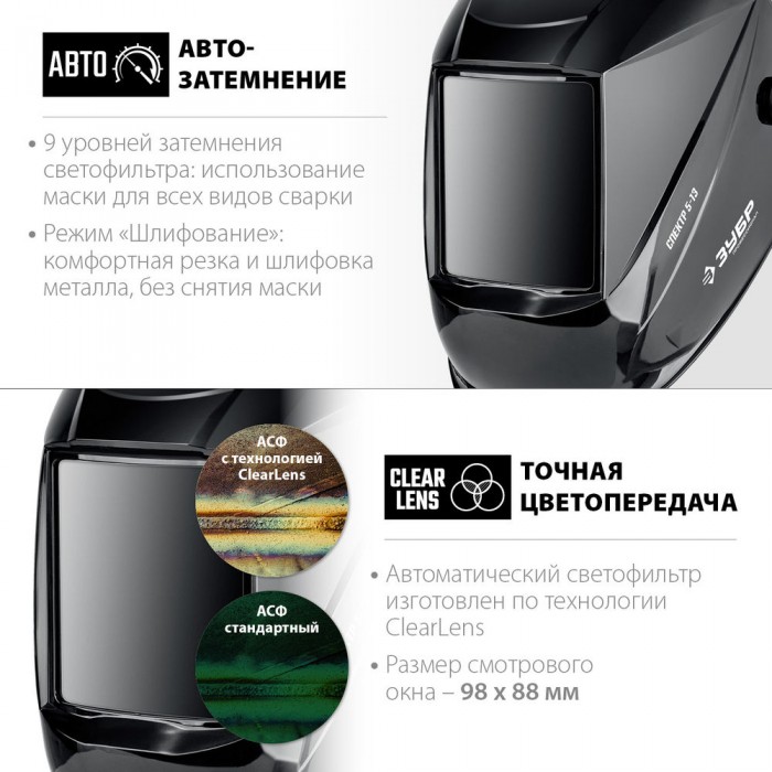 - -Автоматически затемняющийся светофильтр,