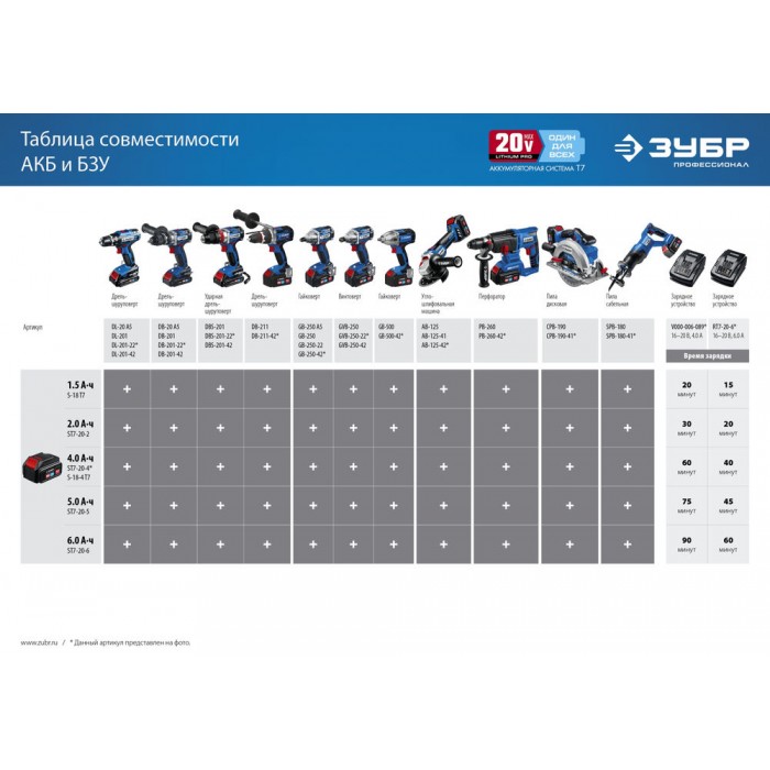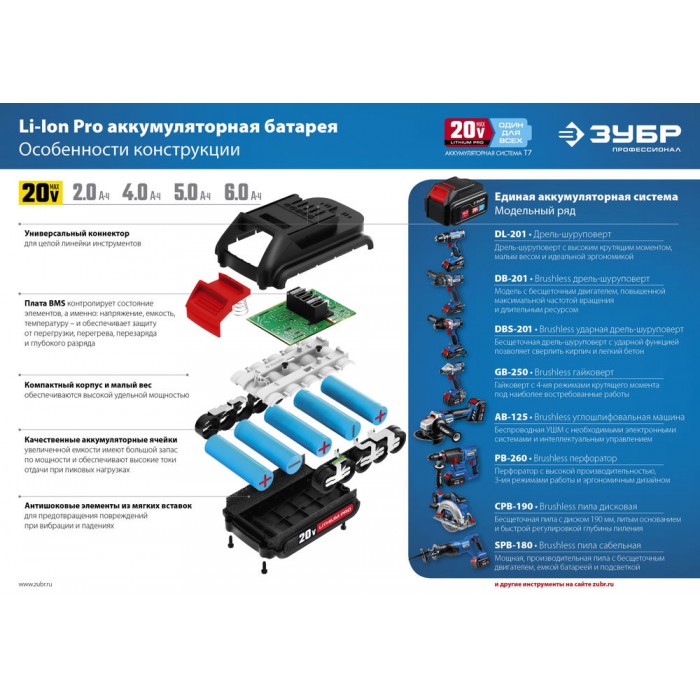 Зарядное устройство для Li-Ion АКБ 20 В 6 А T7 ЗУБР RT7-20-6