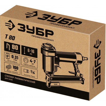Пневматический степлер для скоб 21Ga, тип 80 (6-16 мм) ЗУБР Т80 Профессионал 31938