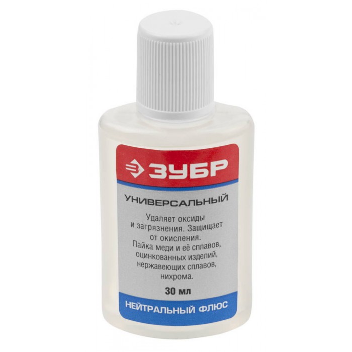 Флюс универсальный Зубр 55494-030 применяется для пайки оксидированных деталей из медных сплавов без предварительной зачистки.