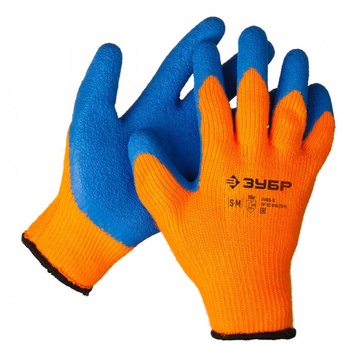Перчатки акриловые сигнального цвета, рельефное латексное покрытие, утепленные, 10 класс, размер S-M ЗУБР УРАЛ Профессионал 11465-S