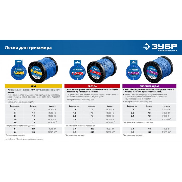 Леска для триммера ВИТОЙ КВАДРАТ 3.0 мм, 230 м ЗУБР Профессионал 71035-3.0